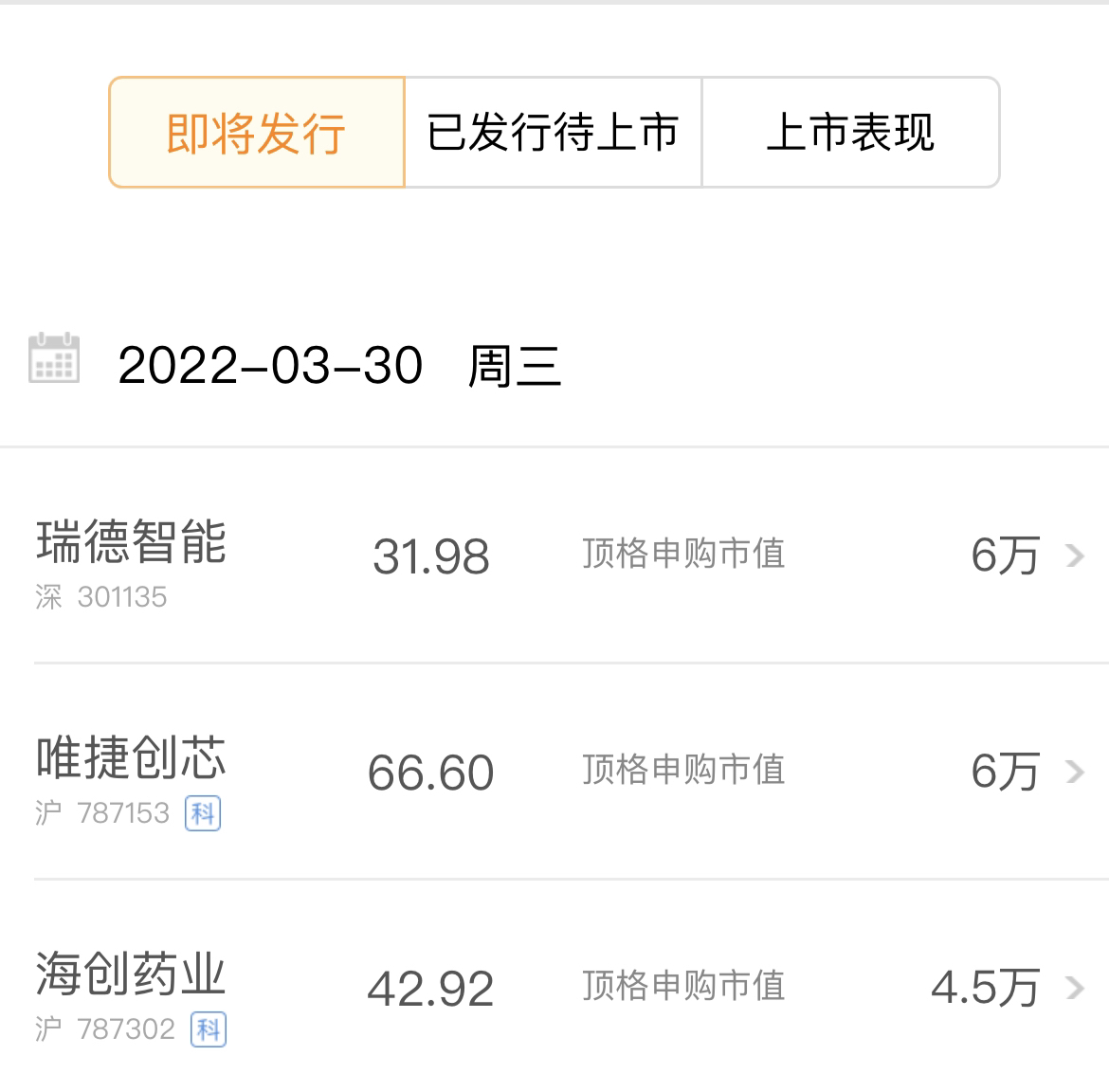 今天有3只新股申购。