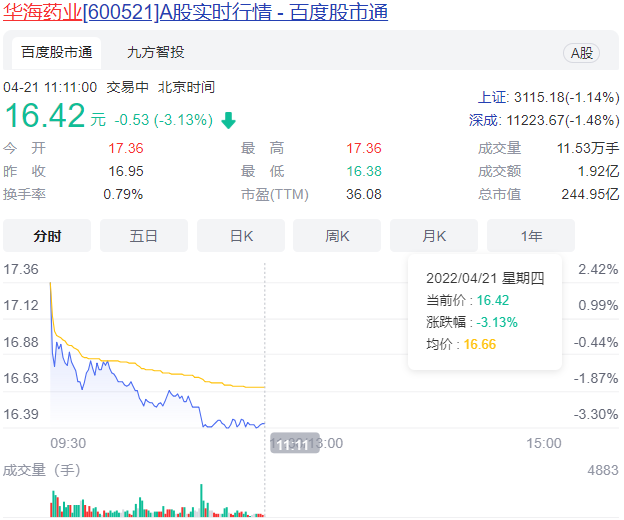 华海药业净利润连续下滑。